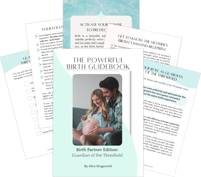 BONUS: Receive the Birth Partner Edition for free: a mini-guide for your chosen protector so they know exactly how to guard your space and support you with precision from first contraction to birth.